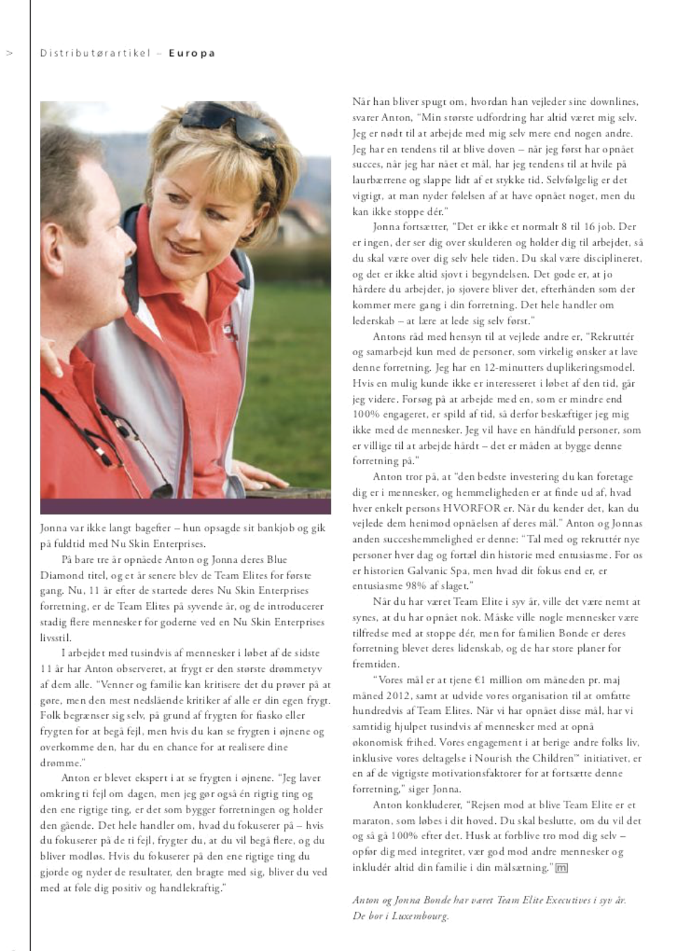 Anton finally agreed to take a serious look into what being a Nu Skin Enterprises Distributor could mean for himself and his family. . Jonna She liked the sound of what Nu Skin Enterprises had to offer, but couldn’t quite believe that it could be the future for her family. After an extremely hectic year of juggling both the jewelry business and the NSE business, Anton decided to make the leap into focusing fully on Nu Skin Enterprises. He had seen the potential and realized that with 100% effort, the rewards would far outweigh what he could achieve with the traditional business model.
